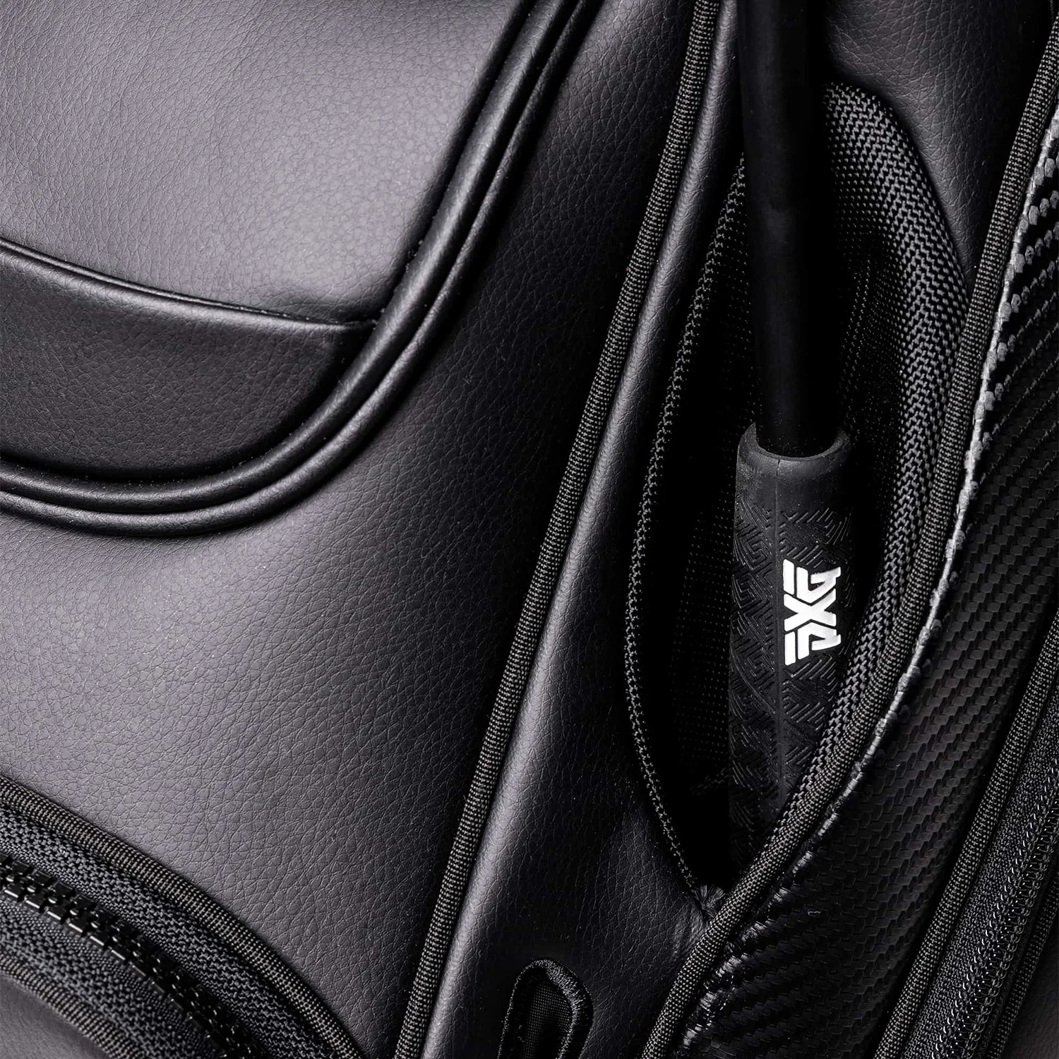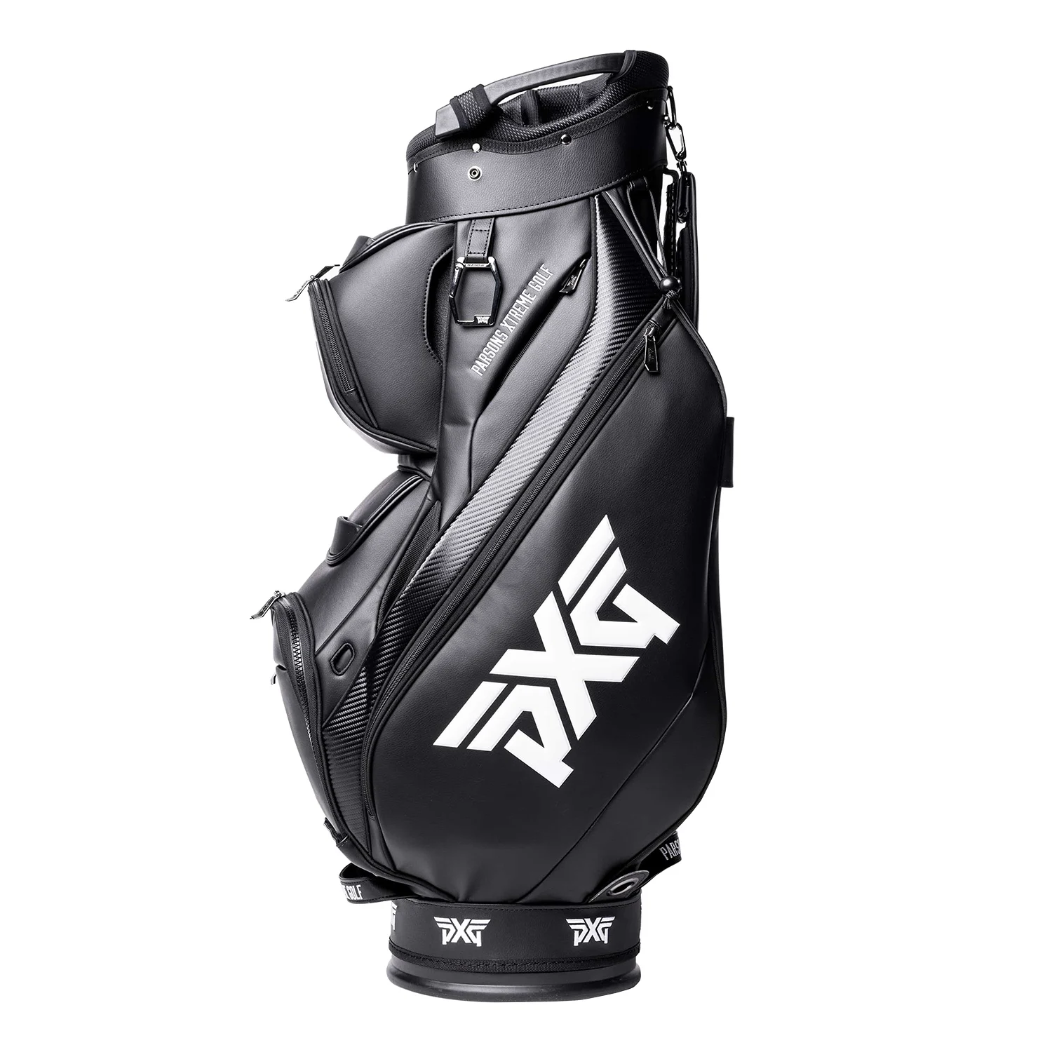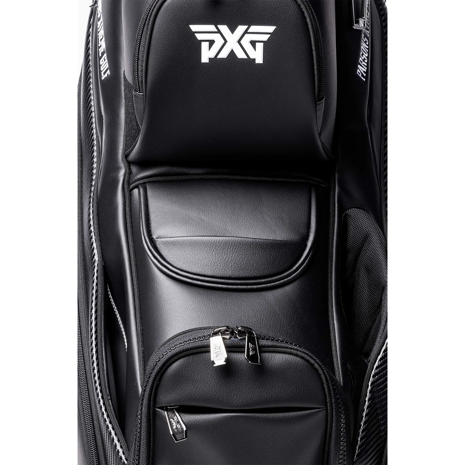El diseño negro de la PXG Deluxe Cart Bag aporta un look sofisticado y sobrio, ideal para golfistas que buscan elegancia sin renunciar a una bolsa funcional y profesional. La calidad de sus materiales y su atención al detalle reflejan la filosofía de PXG: rendimiento de alto nivel con estilo.