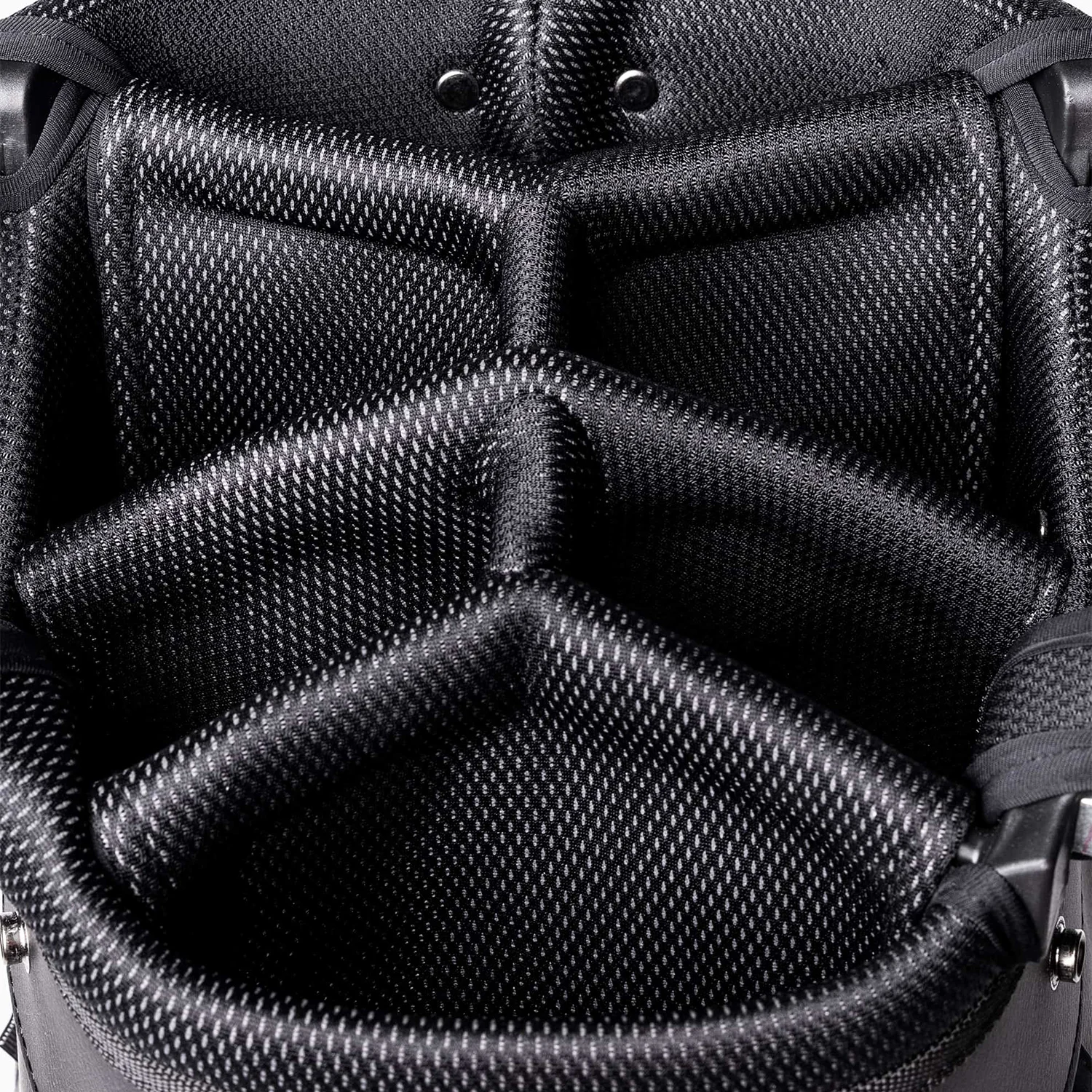Con un top de 6 divisores, incluyendo tres divisores de longitud completa, permite una separación eficiente de los palos, asegurando un acceso rápido y evitando enredos. Pero la organización no termina ahí: esta bolsa cuenta con 17 bolsillos en total, lo que ofrece un espacio generoso y bien distribuido para todo lo que necesitas durante tus rondas.